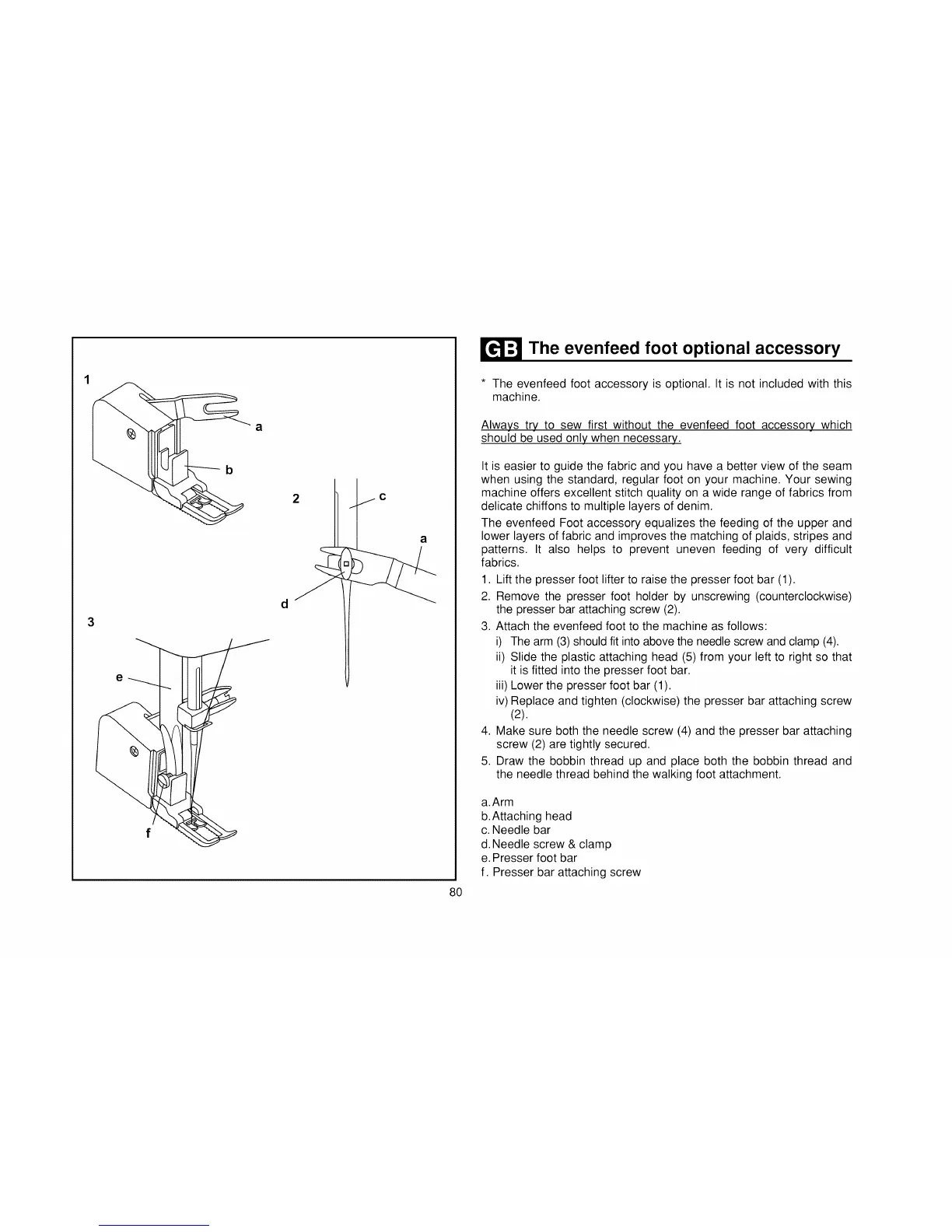 * The evenfeed foot accessory is optional. It is not included with this