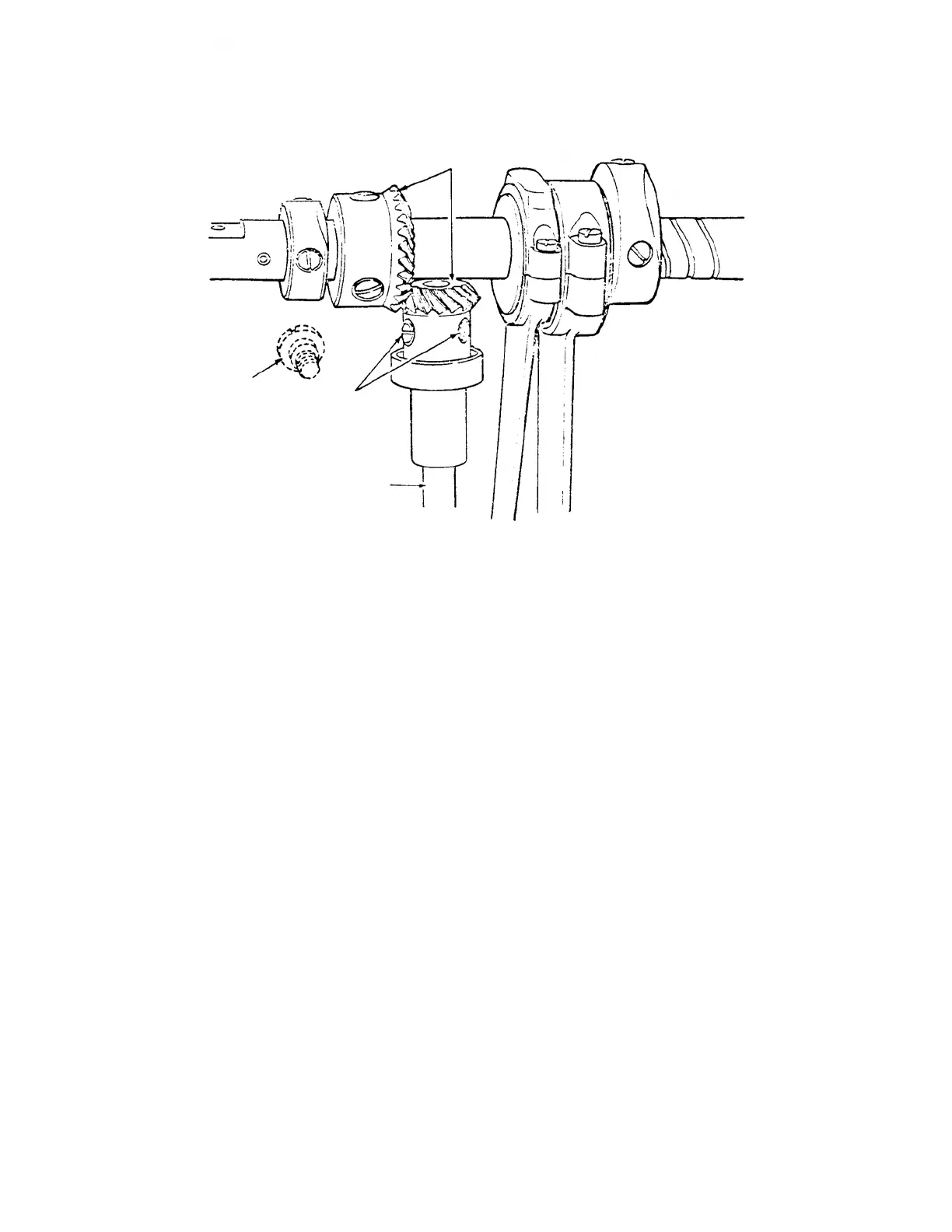 6. Make certain bevel gear at lower end of upright arm shaft is fastened