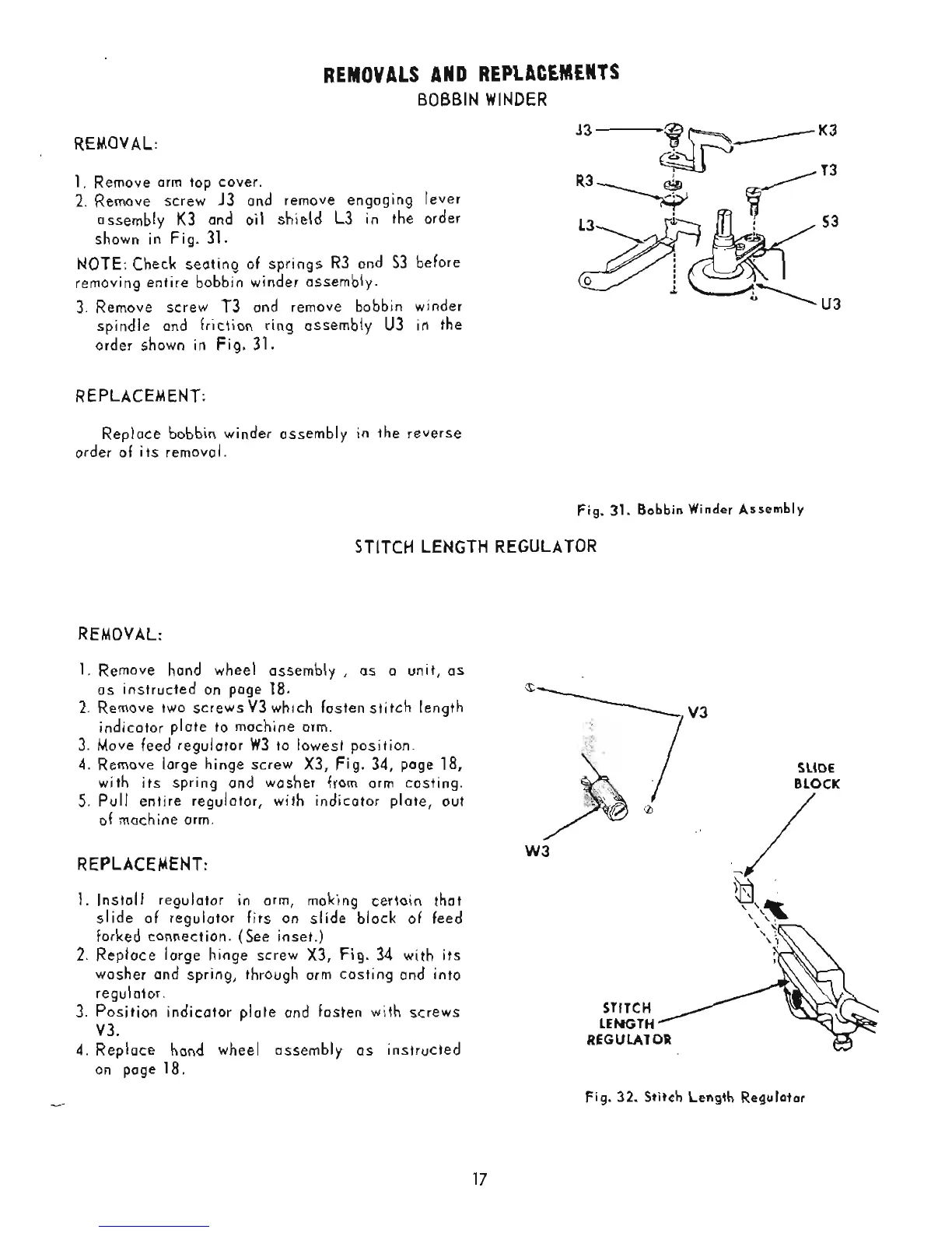 Singer 500 - Removals and Replacements; Bobbin Winder; Stitch Length Regulator