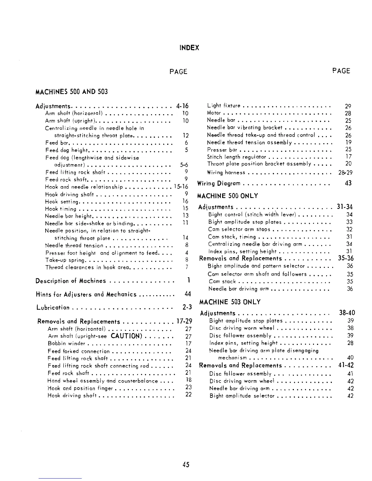 Singer 500 - Index