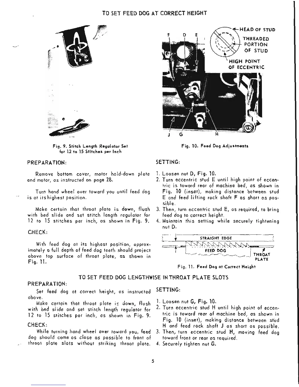 Singer 500 - Adjusting Feed Dog Height; Preparing and Checking Feed Dog Height; Setting Feed Dog Height; Adjusting Feed Dog Position Lengthwise