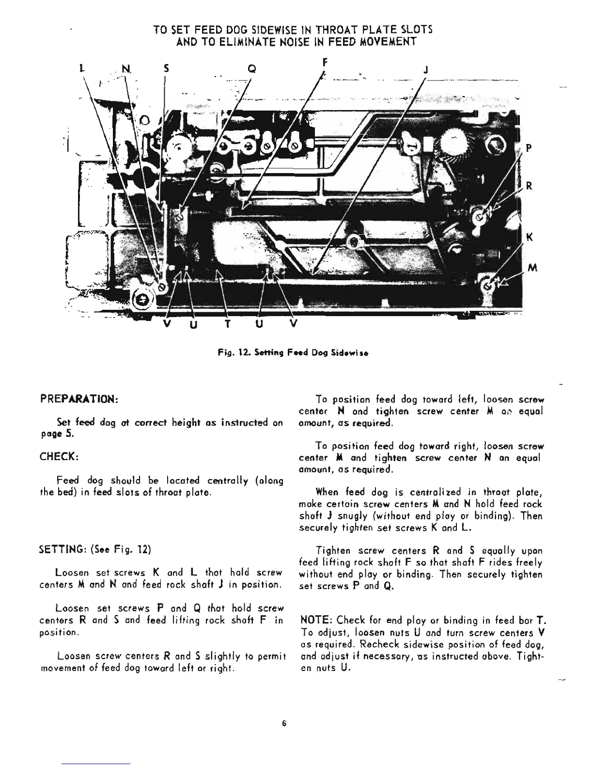 Singer 500 - Adjusting Feed Dog Position Sidewise; Preparing and Checking Feed Dog Sidewise Position; Setting Feed Dog Sidewise Position