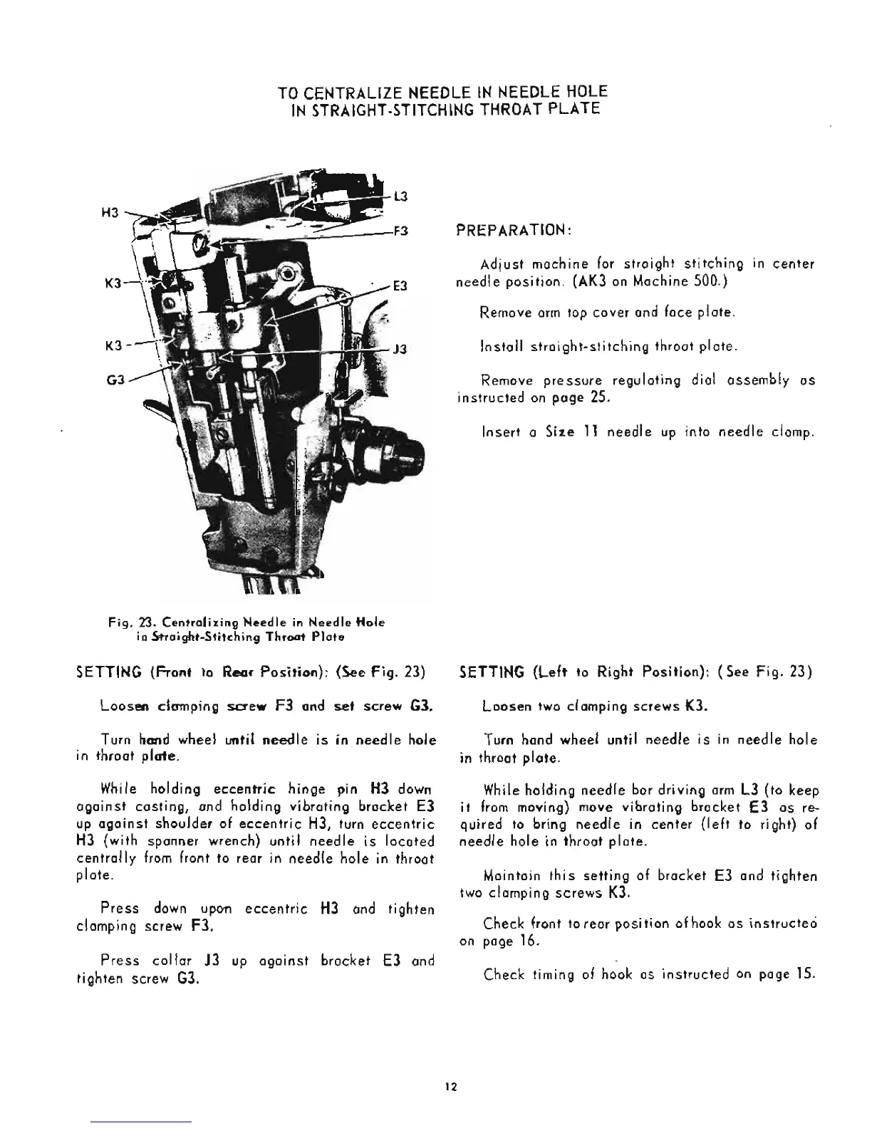 Singer 503 - Timing and Alignment Procedures