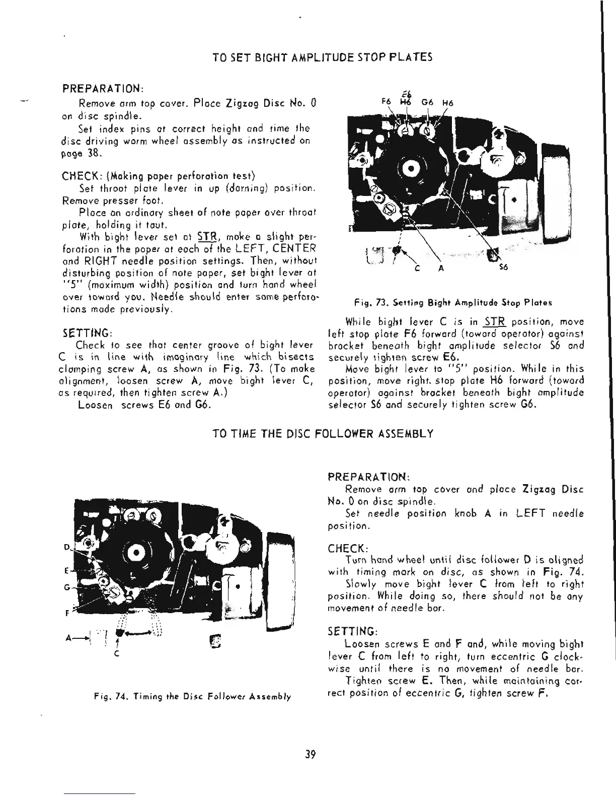 Singer 503 - Bight Amplitude Stop Plate Adjustment; Disc Follower Assembly Timing