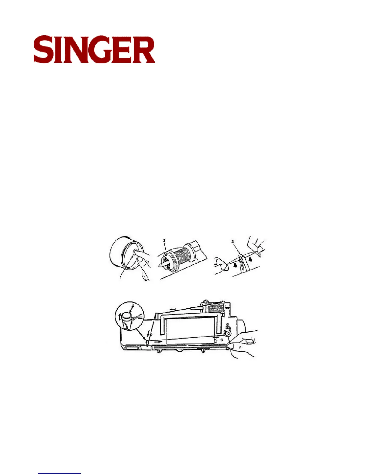 • Pass thread end, from inside, through small hole in rim of bobbin.