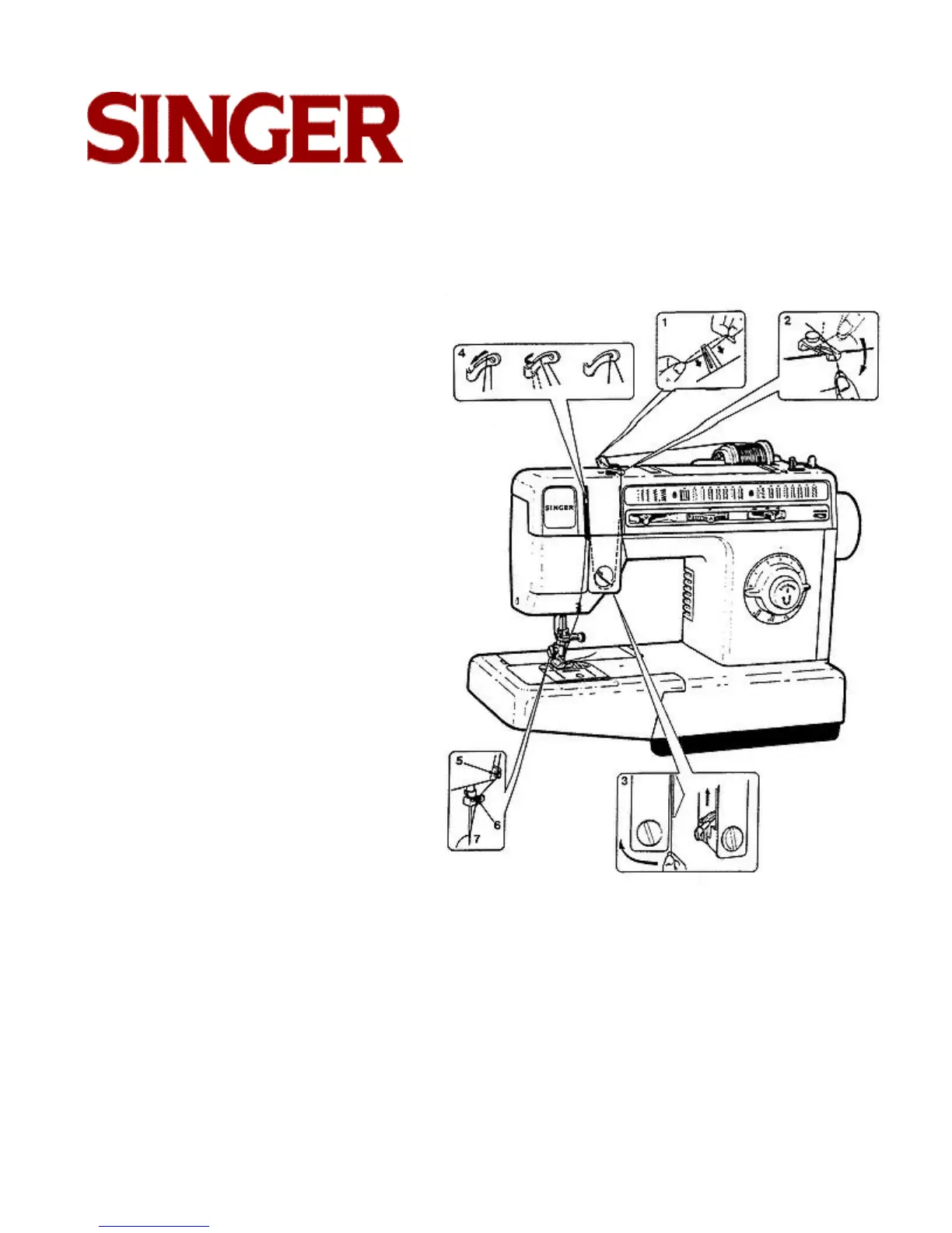 • Pass thread through guides (5) and