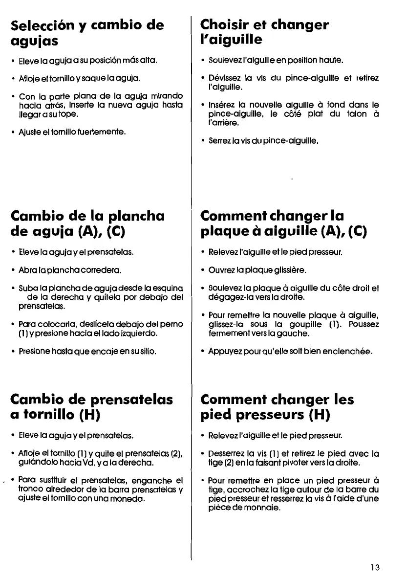 • Afloje el tornillo (1)Yquite el prensatelas (2),