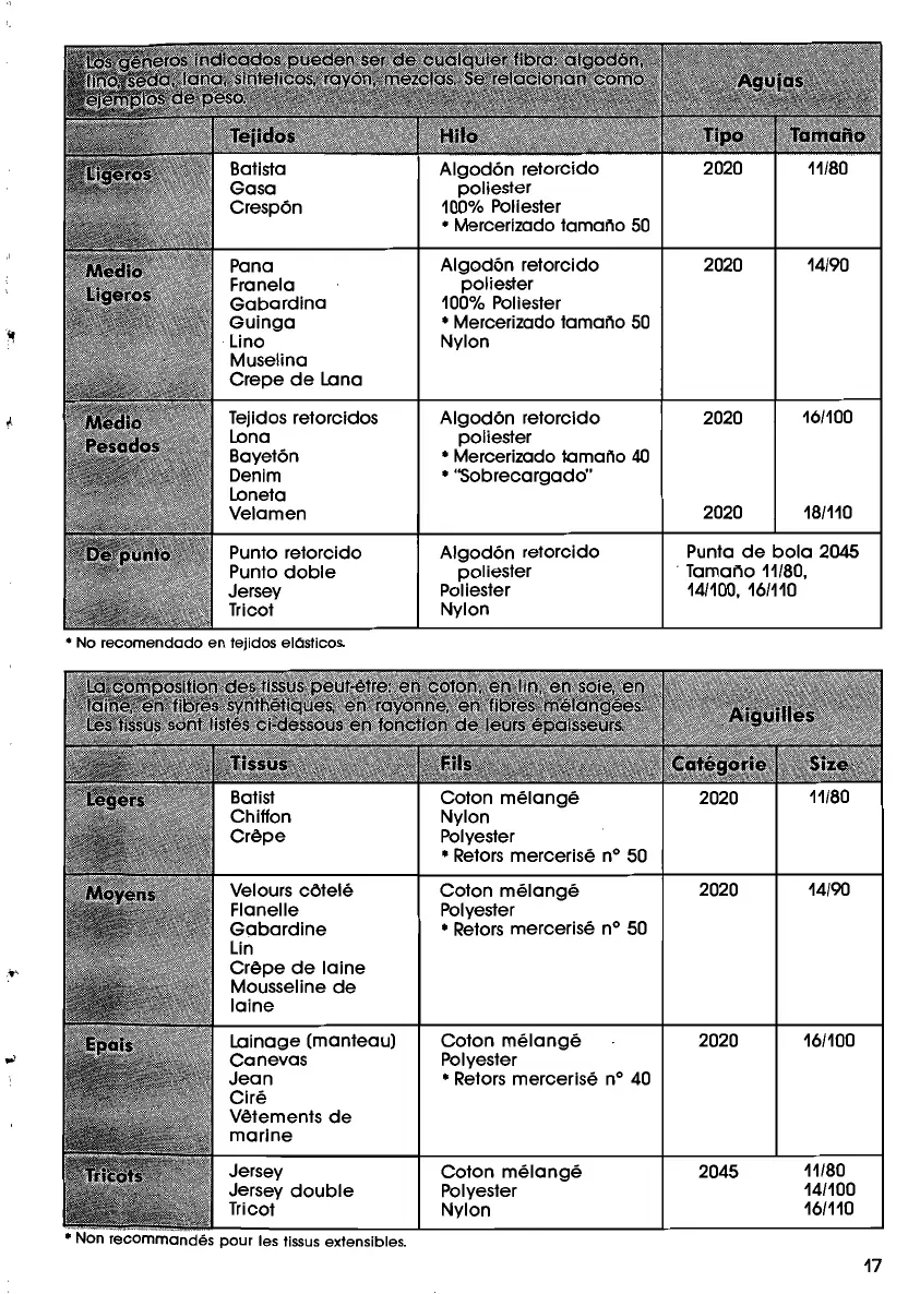 les lissus exlensibles.