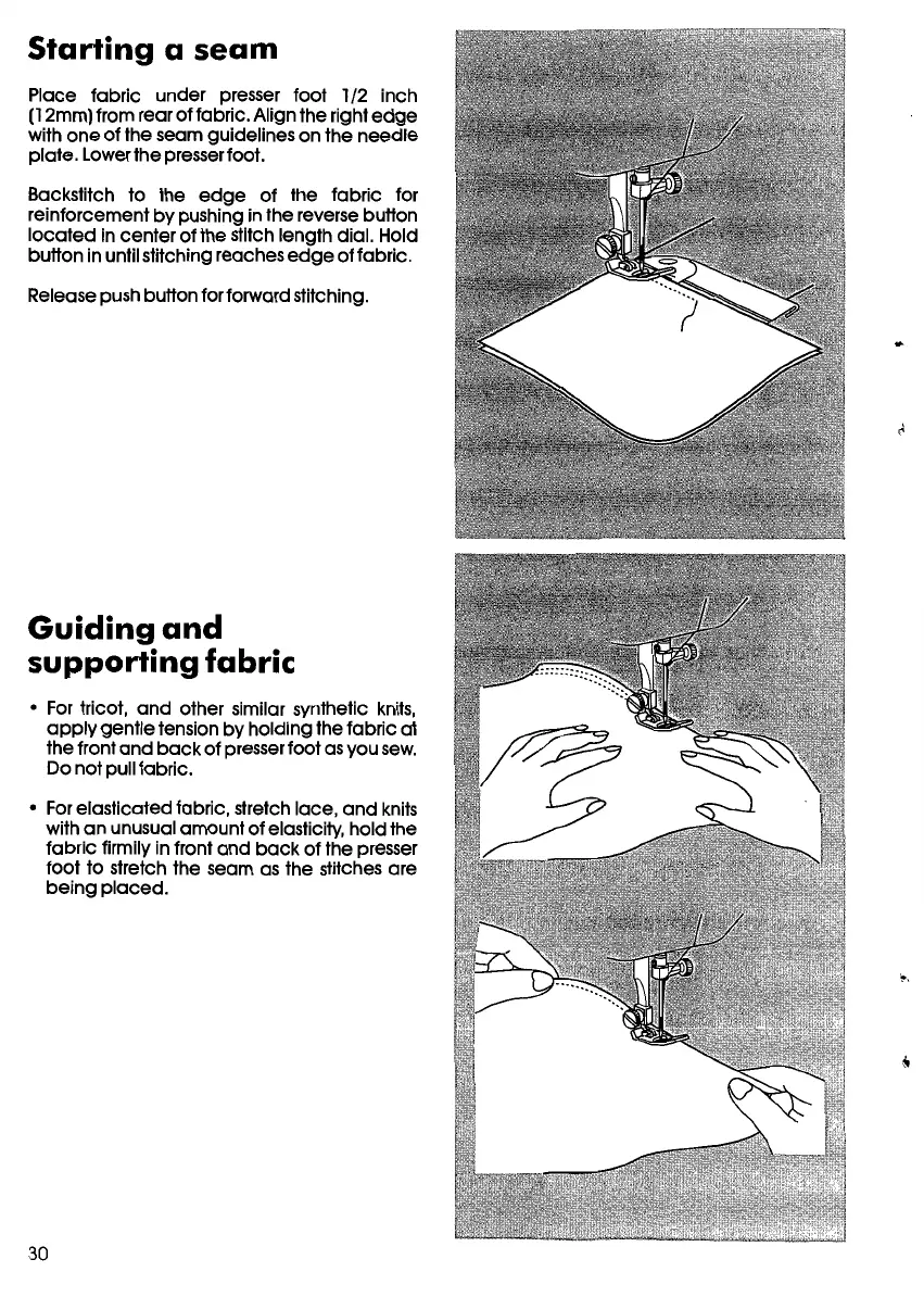 foot to stretch the seam as the stitches are