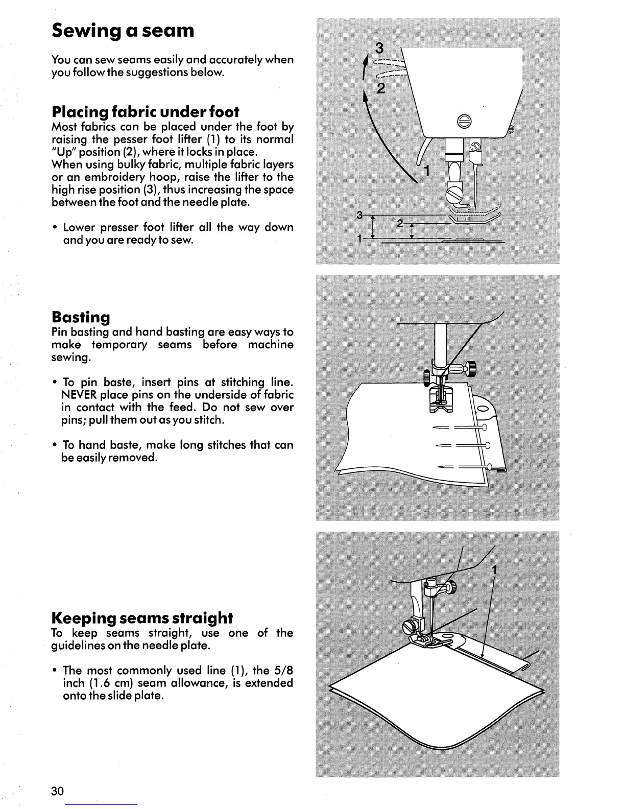 Singer 5062 - Sewing a seam; Placing fabric under foot; Keeping seams straight