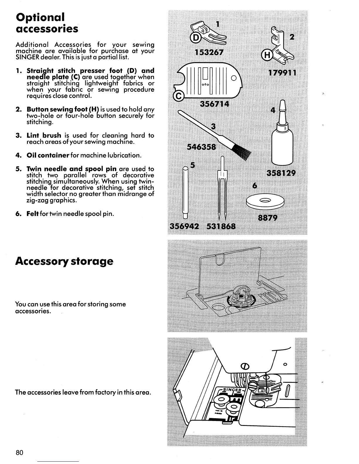 Singer 5062 - Optional accessories