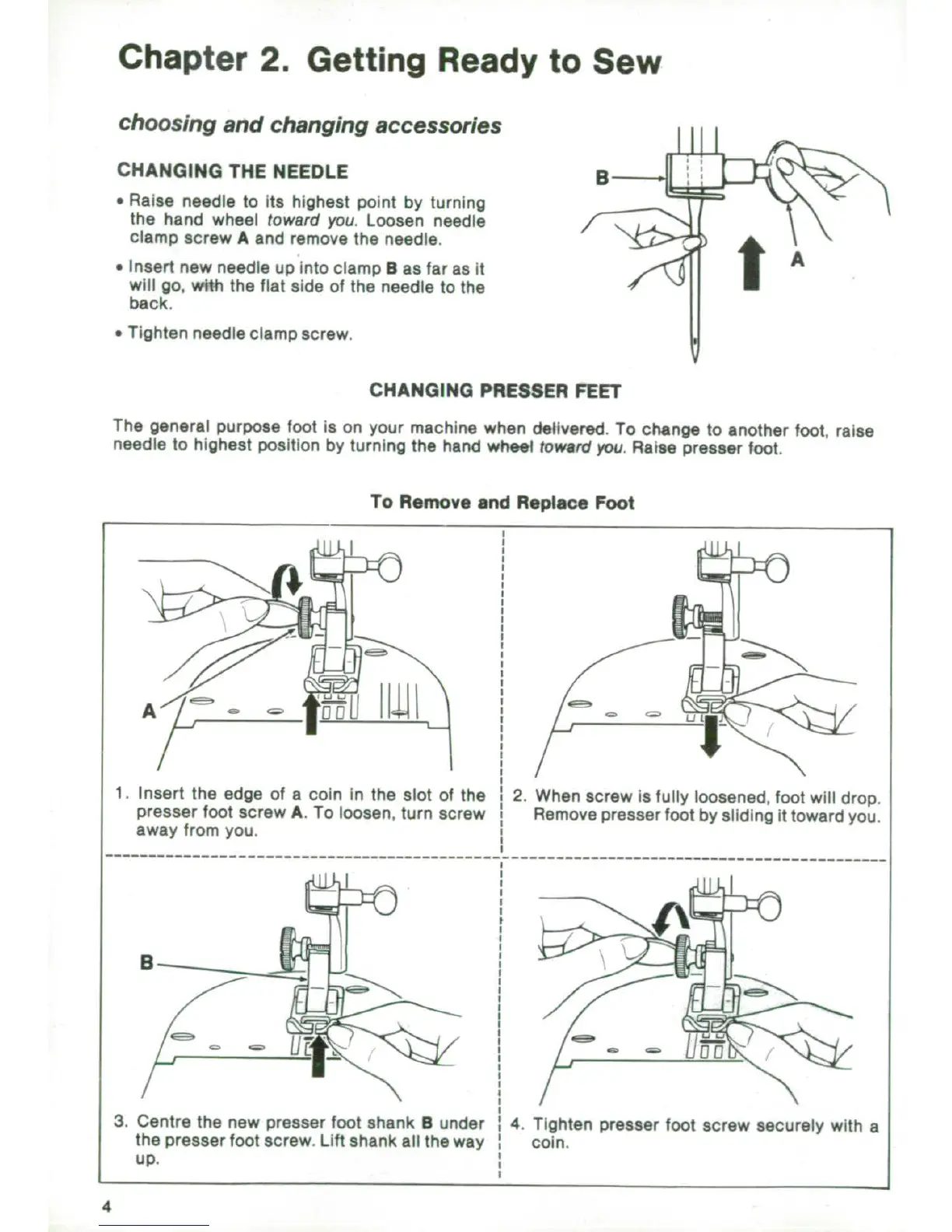 Singer 5102 - Chapter 2. Getting Ready to Sew; Changing the Needle; Changing Presser Feet