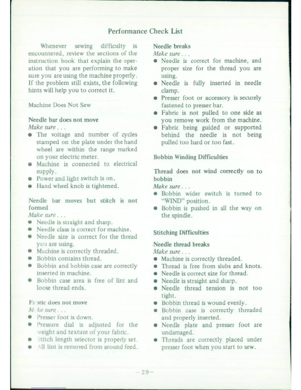 Singer 5127 - Performance Check List