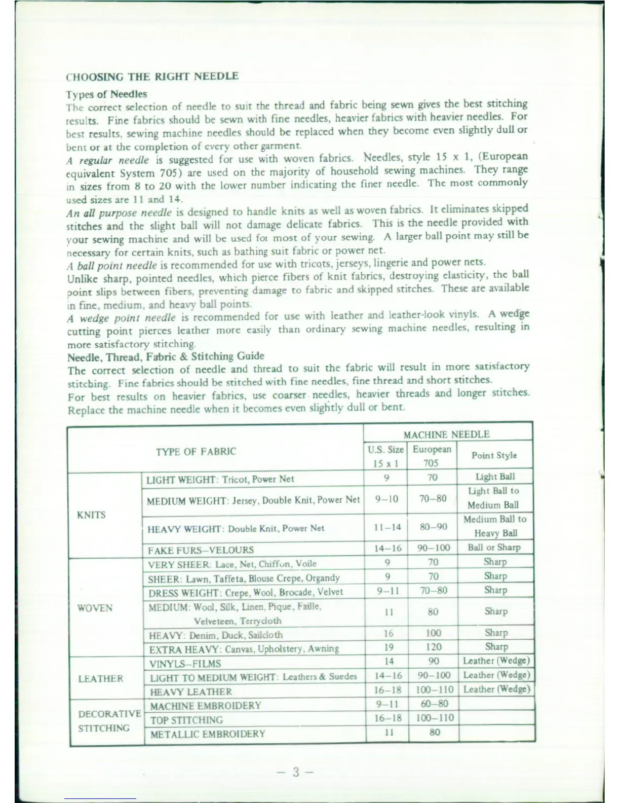 Singer 5127 - CHOOSING THE RIGHT NEEDLE
