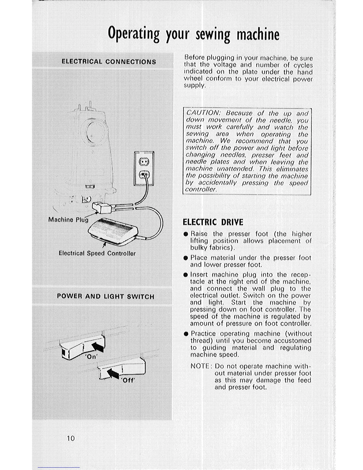 Singer 514 - Operating Your Sewing Machine; Electrical Connections; Electric Drive; Power and Light Switch