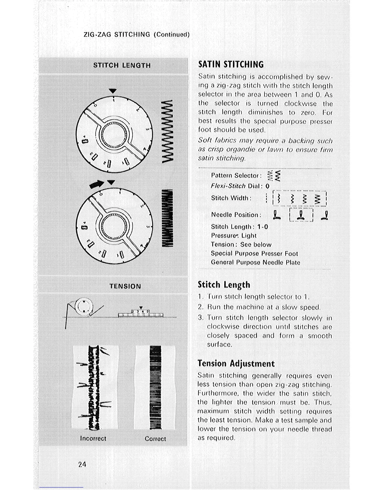 Singer 514 - Satin Stitching; Stitch Length; Tension Adjustment