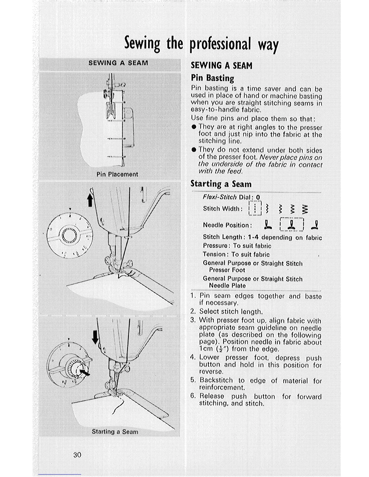 Singer 514 - Sewing the Professional Way; Sewing a Seam; Pin Basting; Starting a Seam