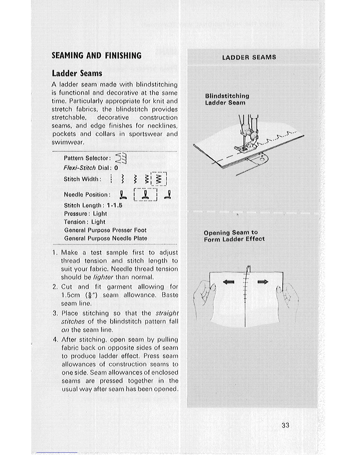 Singer 514 - Seaming and Finishing; Blindstitching Ladder Seam; Opening Seam to Form Ladder Effect