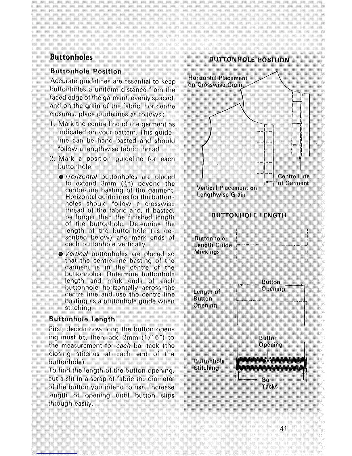 Singer 514 - Buttonhole Position; Buttonhole Length