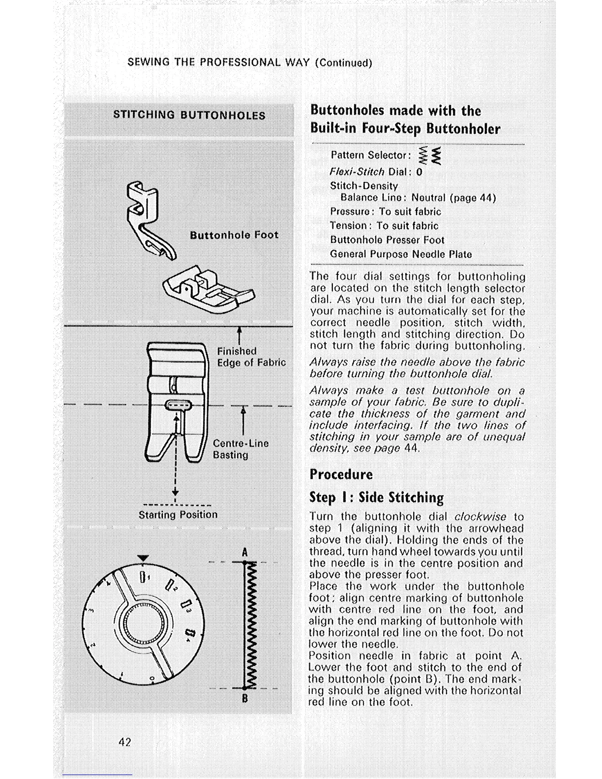 Singer 514 - Buttonholes Made with the Built-In Four-Step Buttonholer; Stitching Buttonholes; Side Stitching