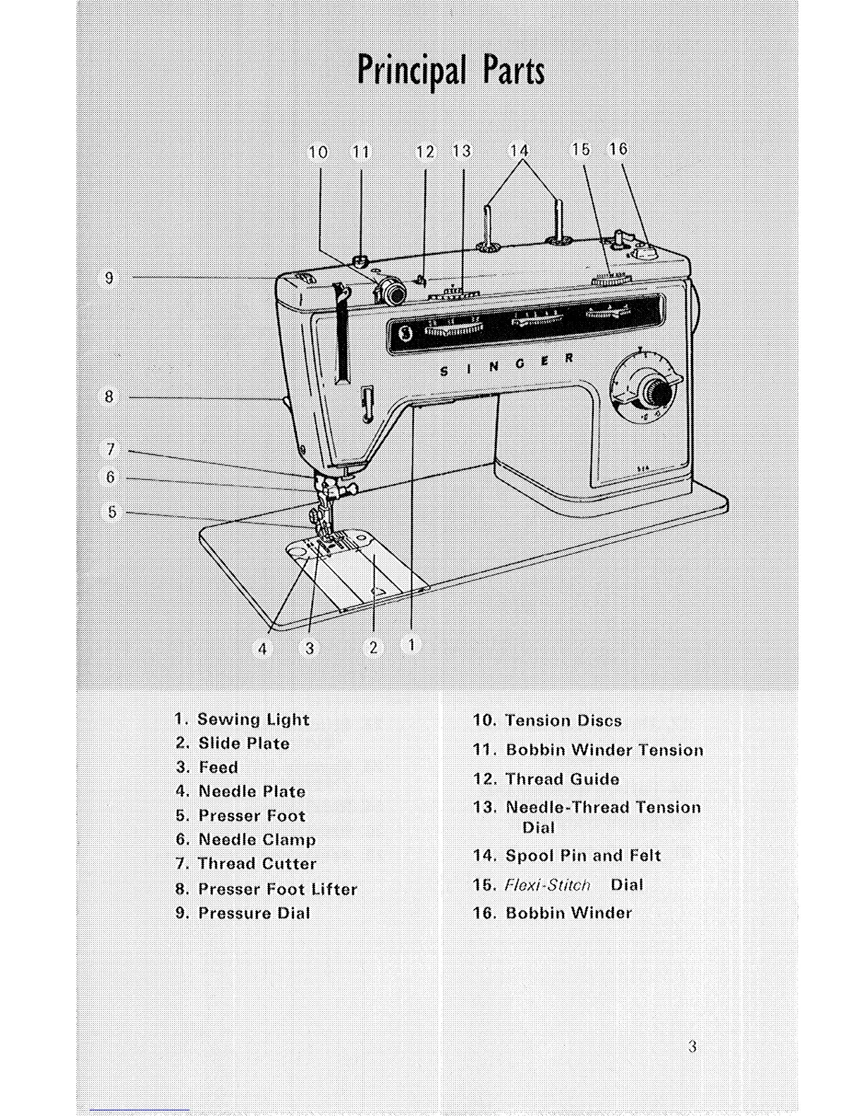 Singer 514 - Product View and Principle Parts; Principal Parts