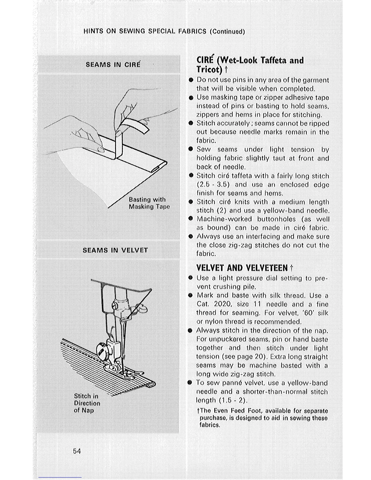 Singer 514 - Cire (Wet-Look Taffeta and Tricot); Seams in Cire; Velvet and Velveteen; Seam in Velvet