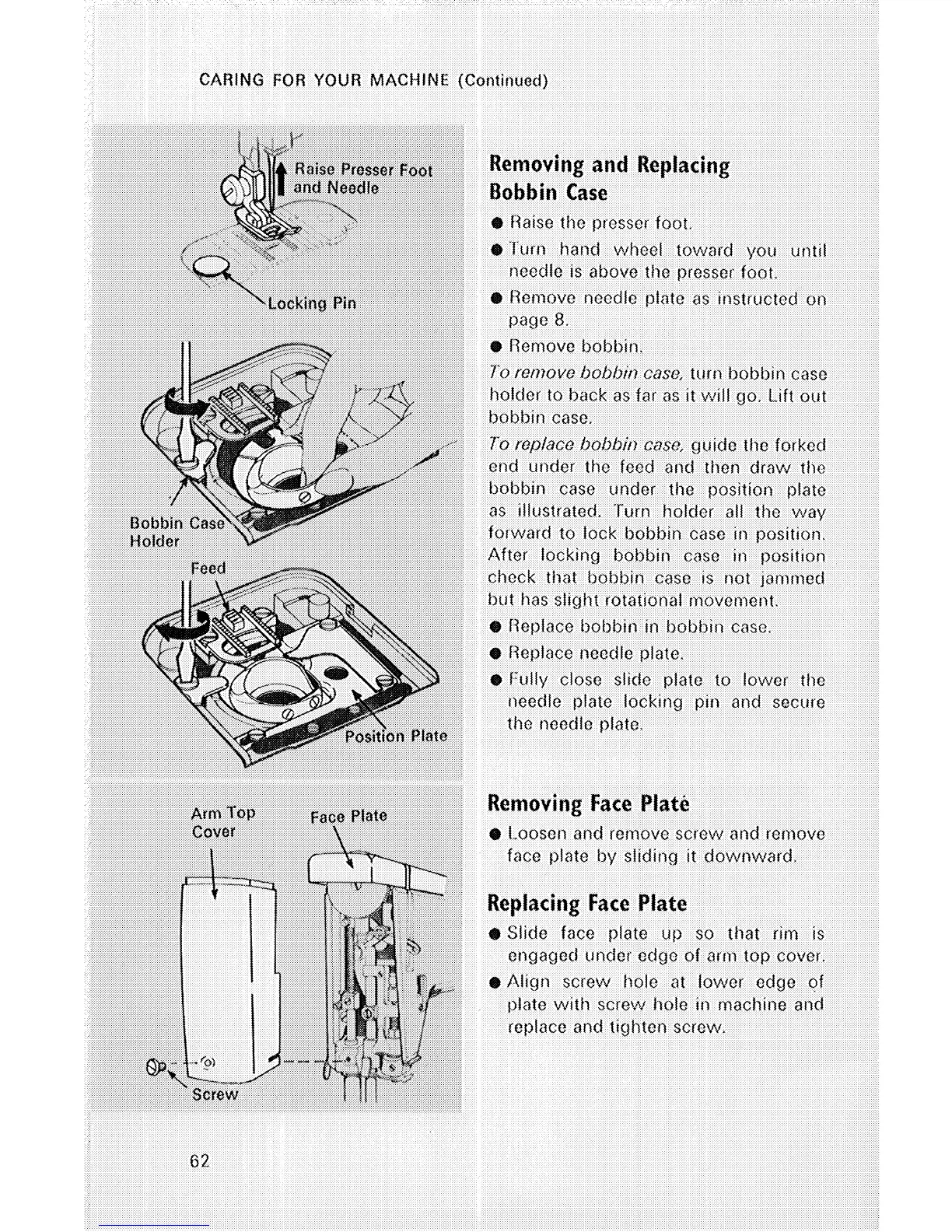 Singer 514 - Removing and Replacing Bobbin Case; Removing Face Plate; Replacing Face Plate