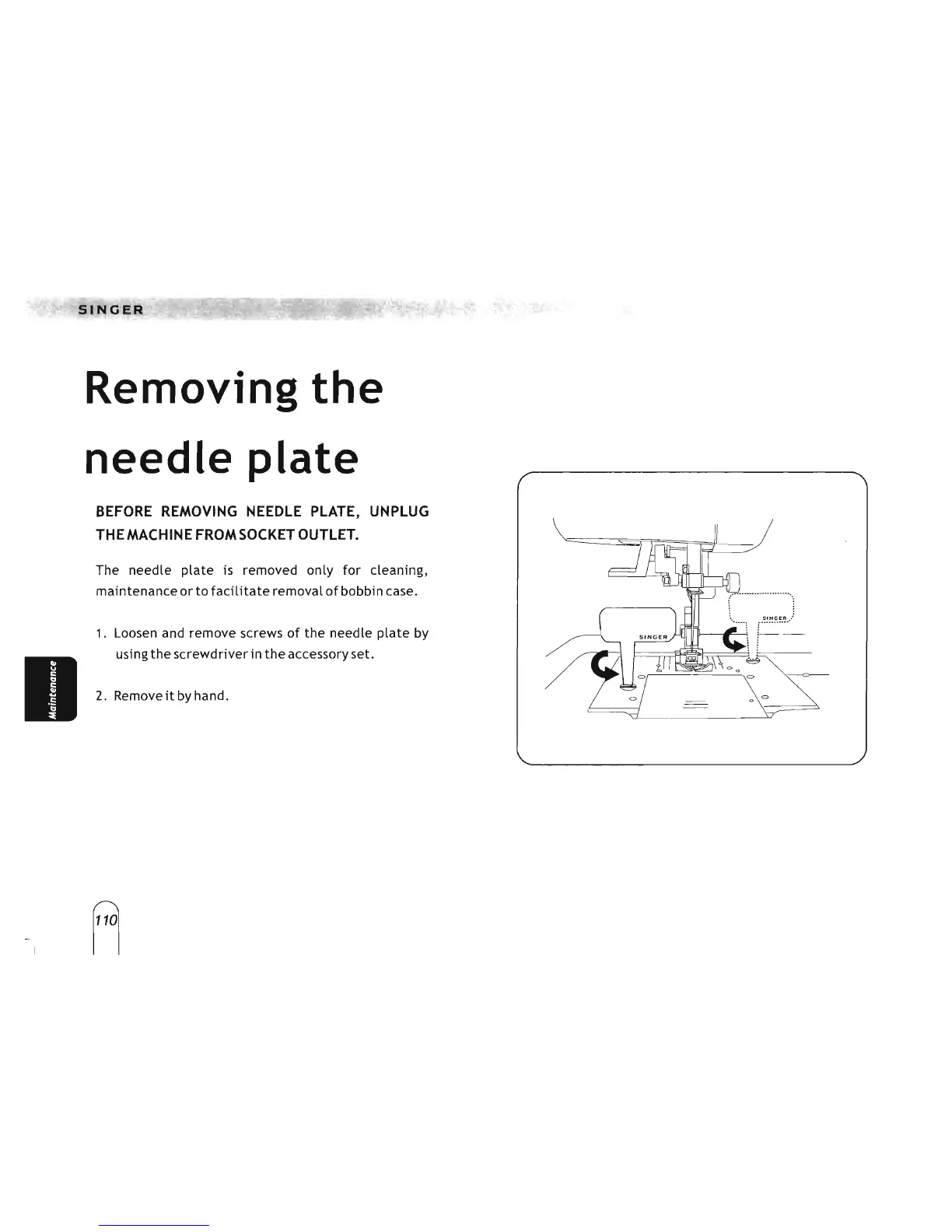 Singer 5160 - Maintenance; Removing the Needle Plate