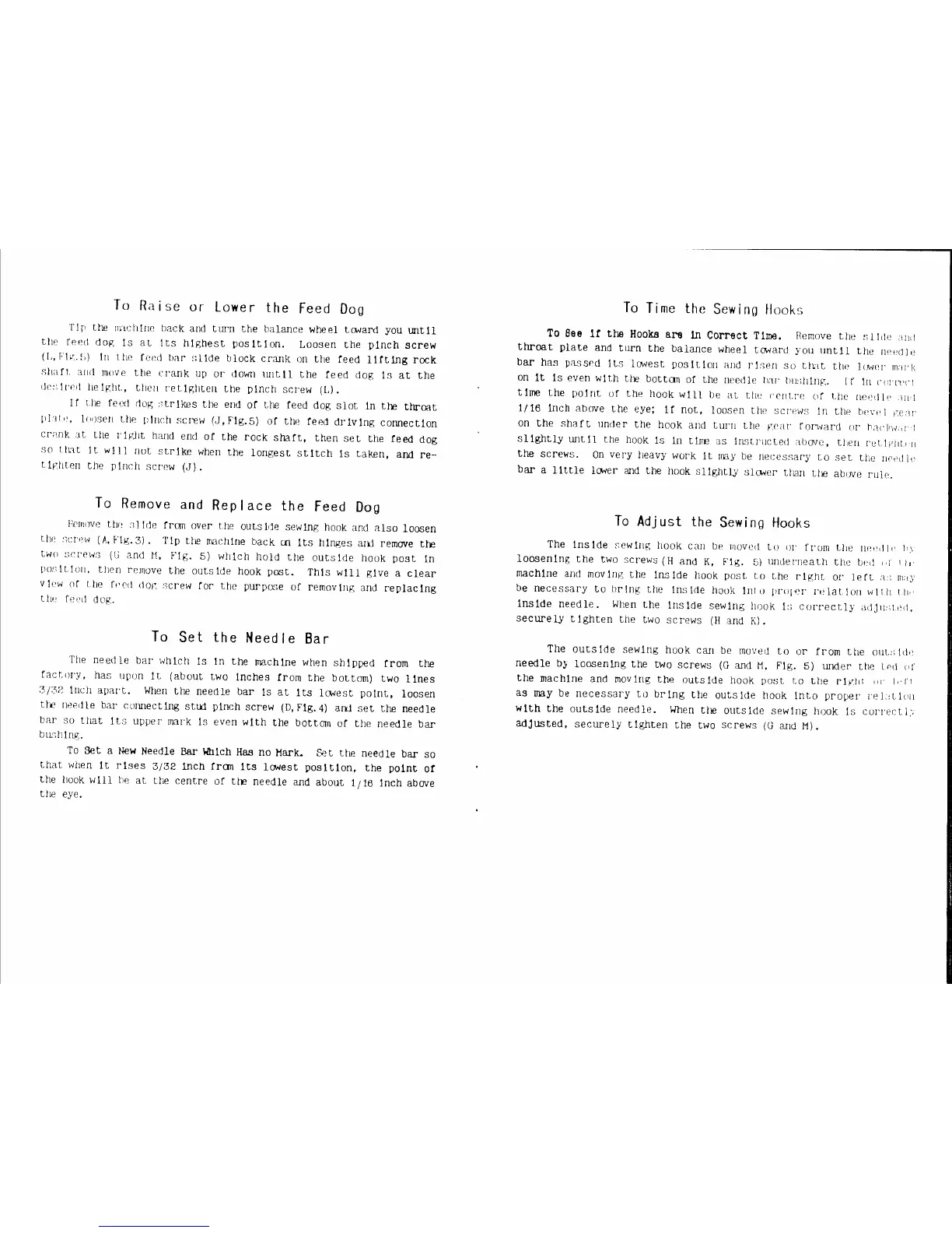 Singer 51W19 - Feed Dog and Sewing Hook Timing; Raising or Lowering the Feed Dog; Setting the Needle Bar; Timing the Sewing Hooks