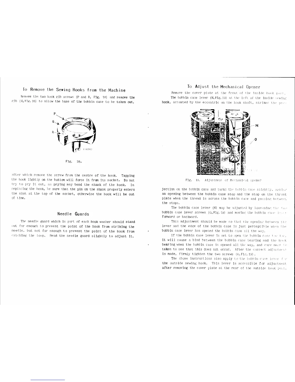 Singer 51W19 - Sewing Hook and Bobbin Case Adjustments; Removing Sewing Hooks; Needle Guards Adjustment; Adjusting Mechanical Opener