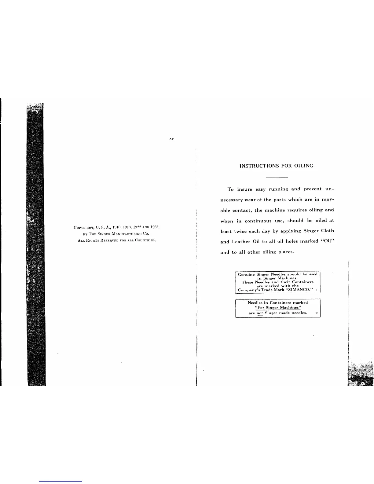 Singer 52-67 - INSTRUCTIONS FOR OILING