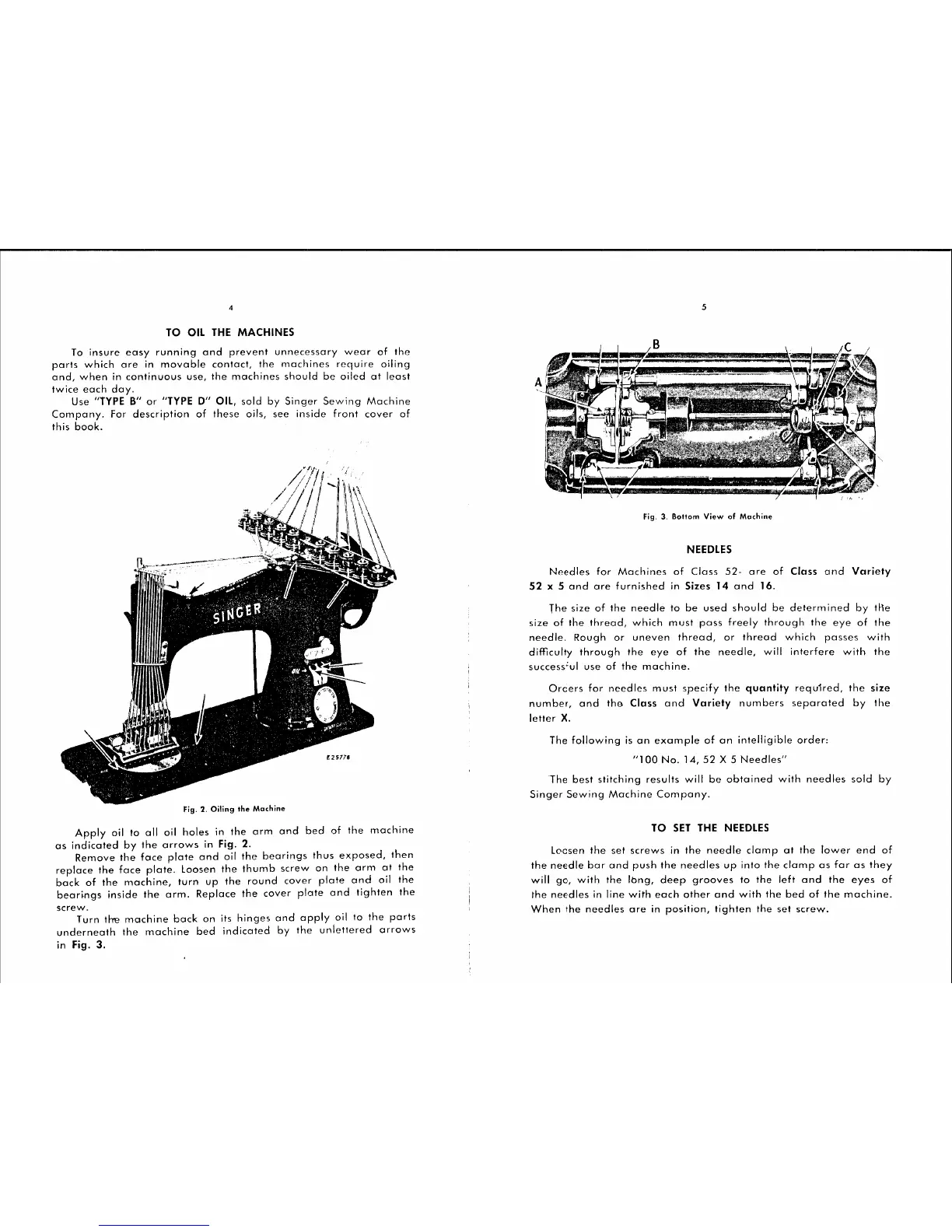Singer 52 - Machine Maintenance and Parts; Oiling Procedures; Needle Specifications and Installation