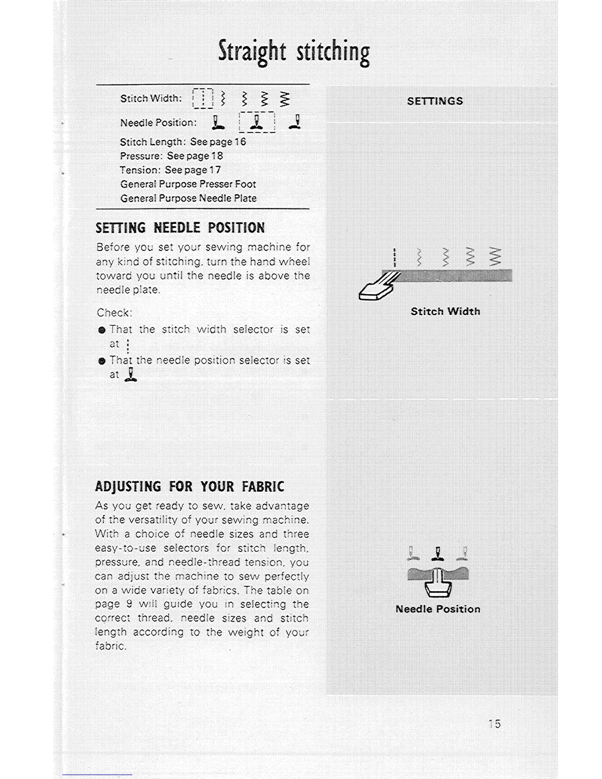 Singer 522 - Straight Stitching; Setting Needle Position; Adjusting for Your Fabric