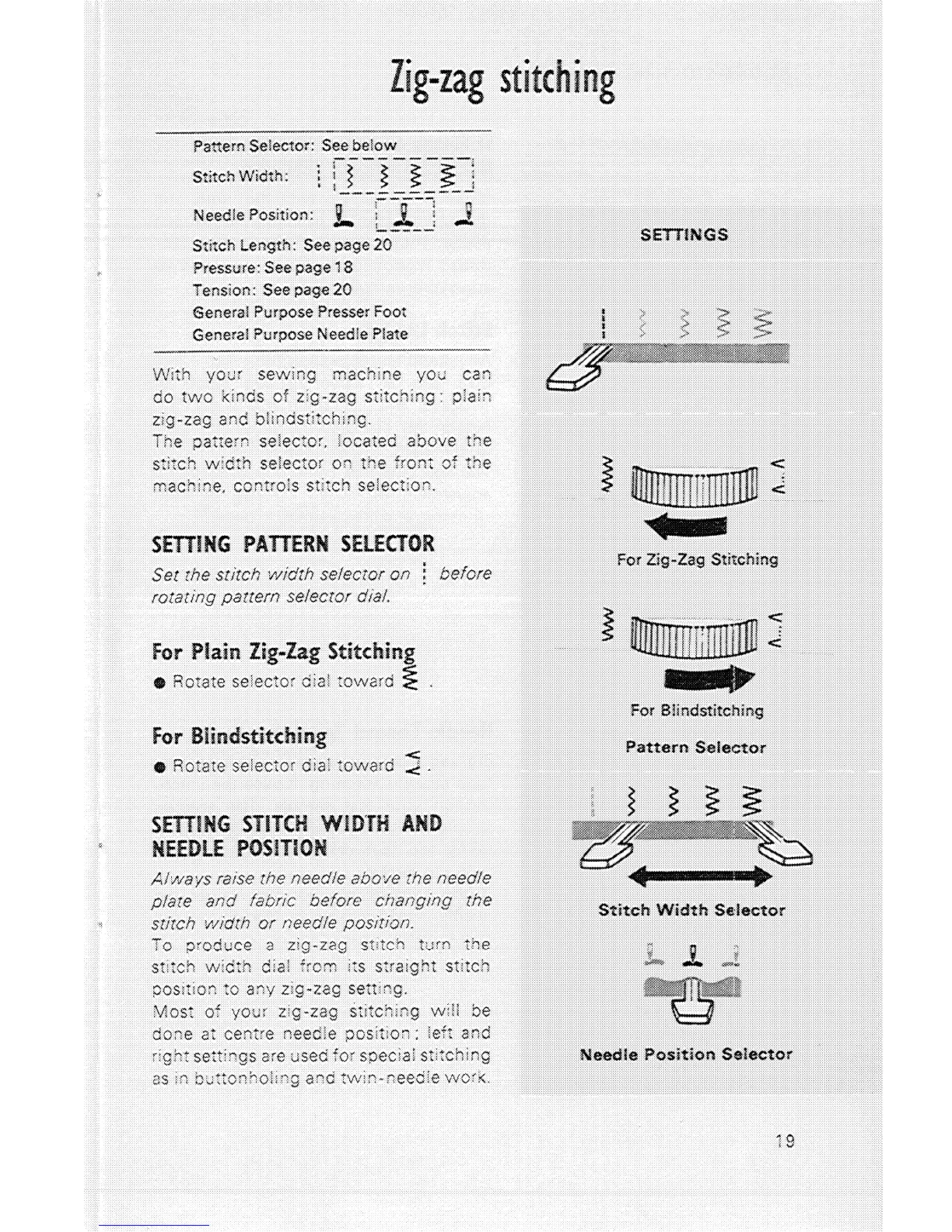 Singer 522 - Zig-Zag Stitching; Setting Pattern Selector; Setting Stitch Width and Needle Position