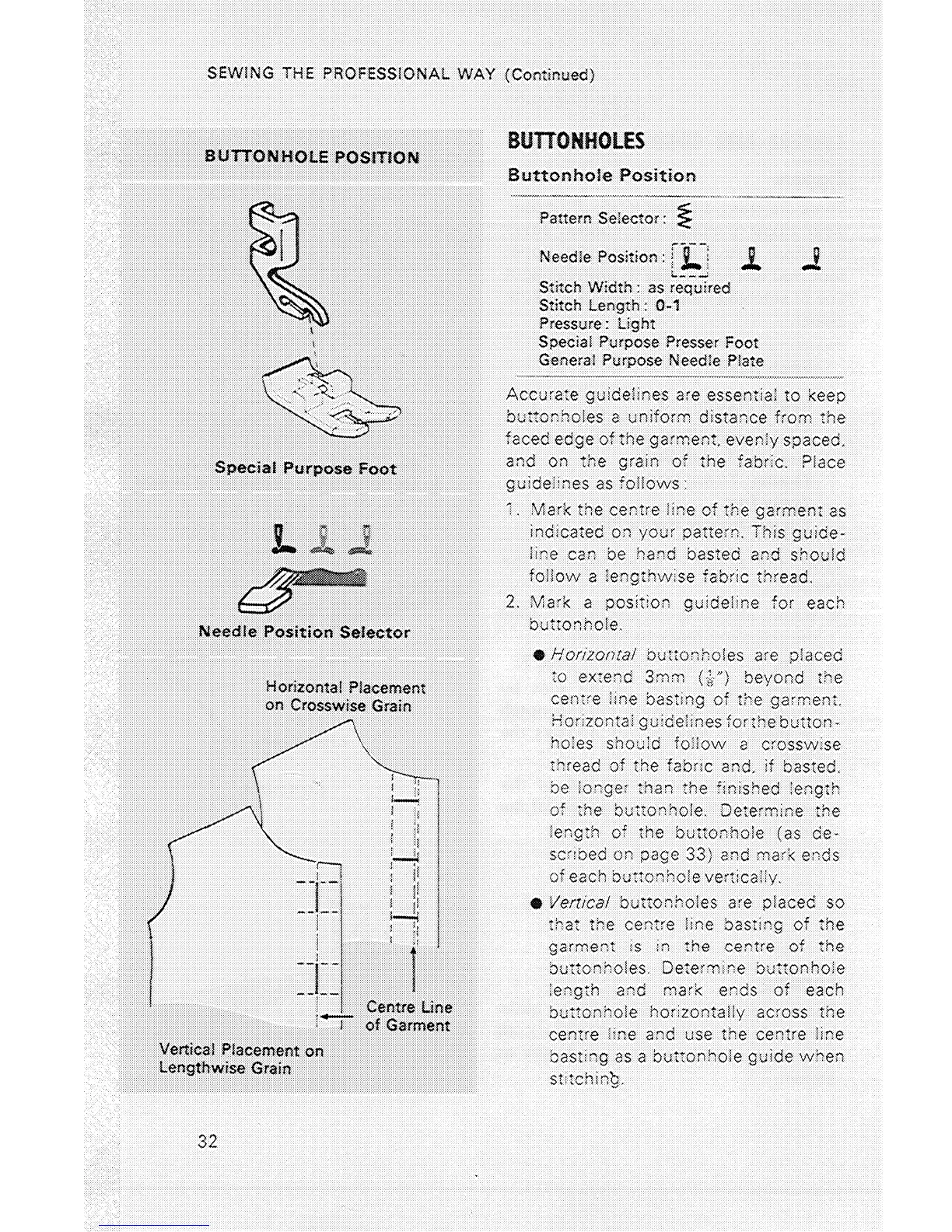 Singer 522 - Buttonhole Position; Special Purpose Foot; Needle Position Selector