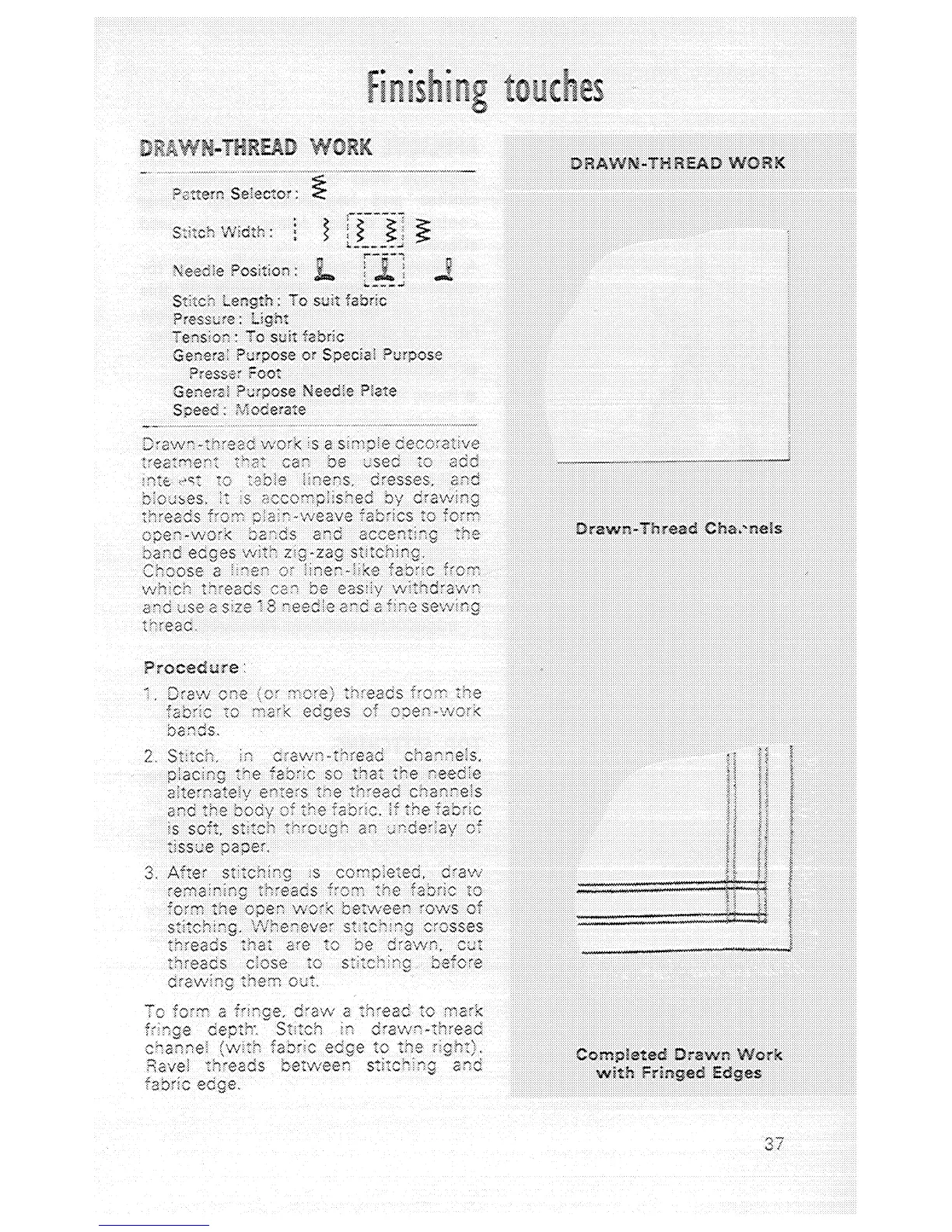 Singer 522 - Drawn-Thread Work; Drawn-Thread Channels; Completed Drawn Work with Fringed Edges