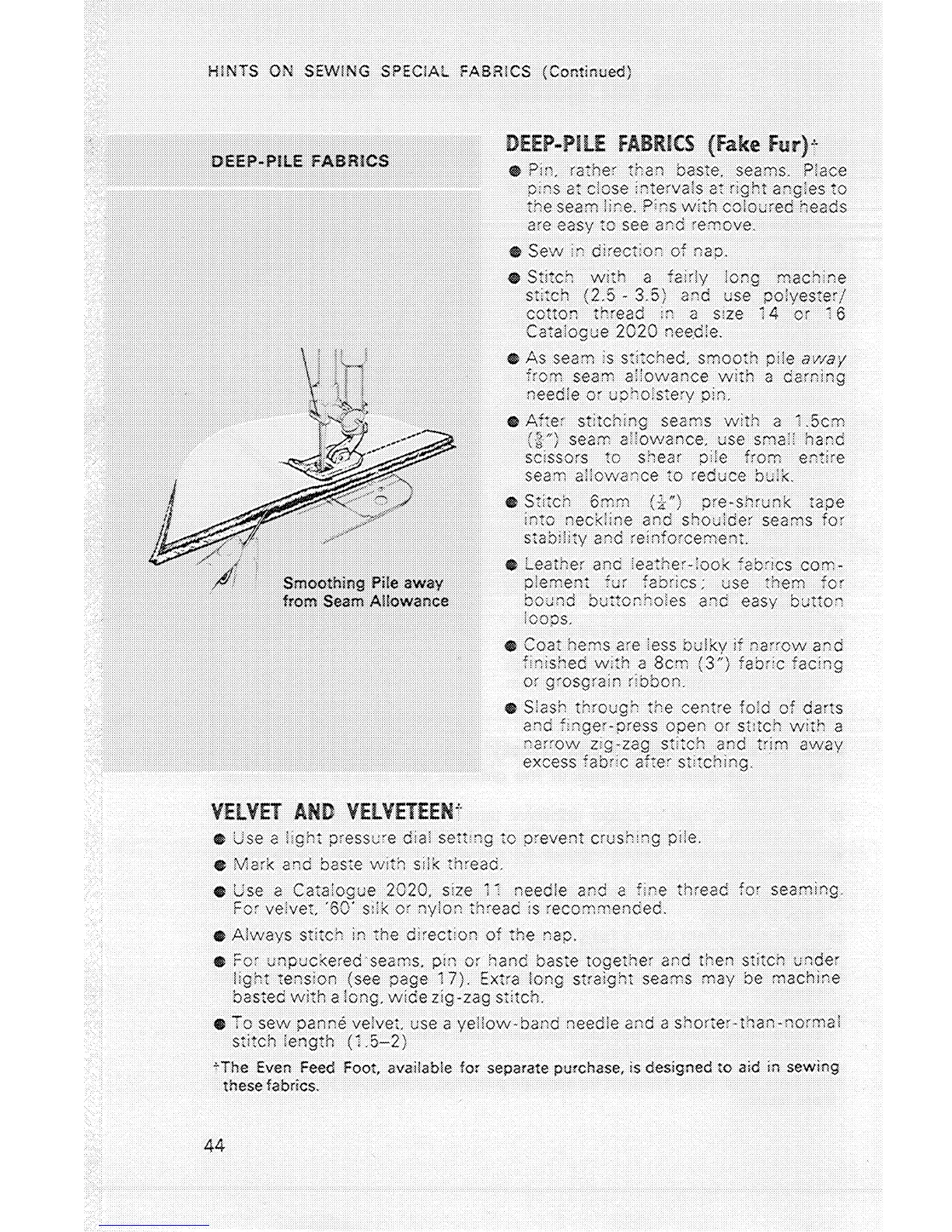 Singer 522 - Deep-Pile Fabrics (Fake Fur); Velvet and Velvetten