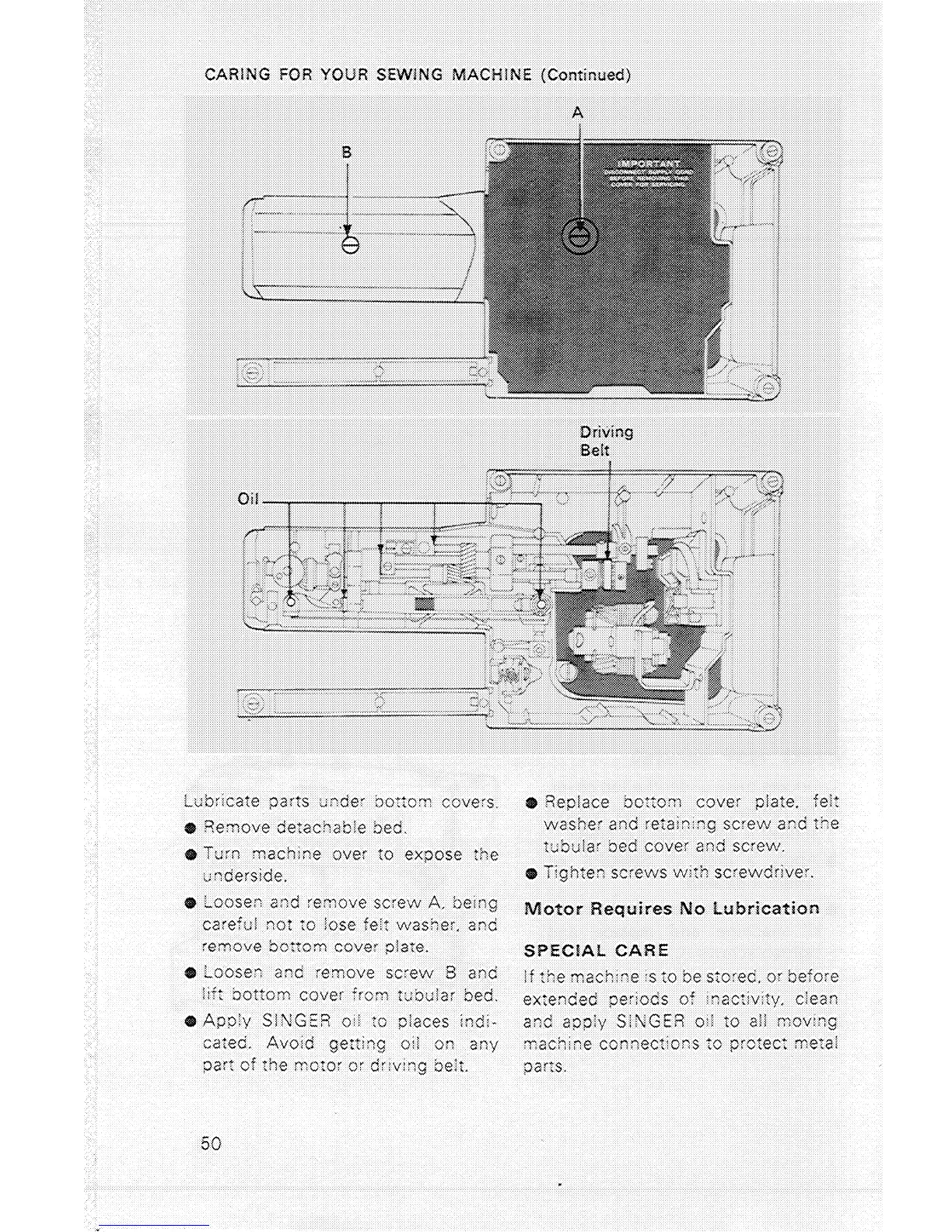 Singer 522 - Motor Requires no Lubrication; Special Care