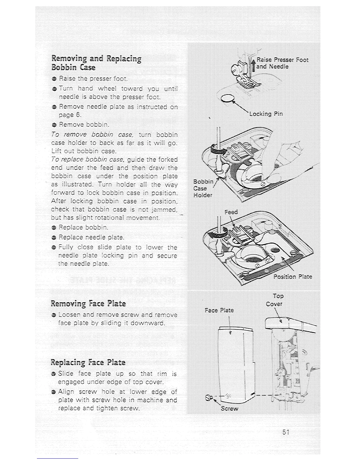 Singer 522 - Removing and Replacing Bobbin Case; Removing Face Plate; Replacing Face Plate