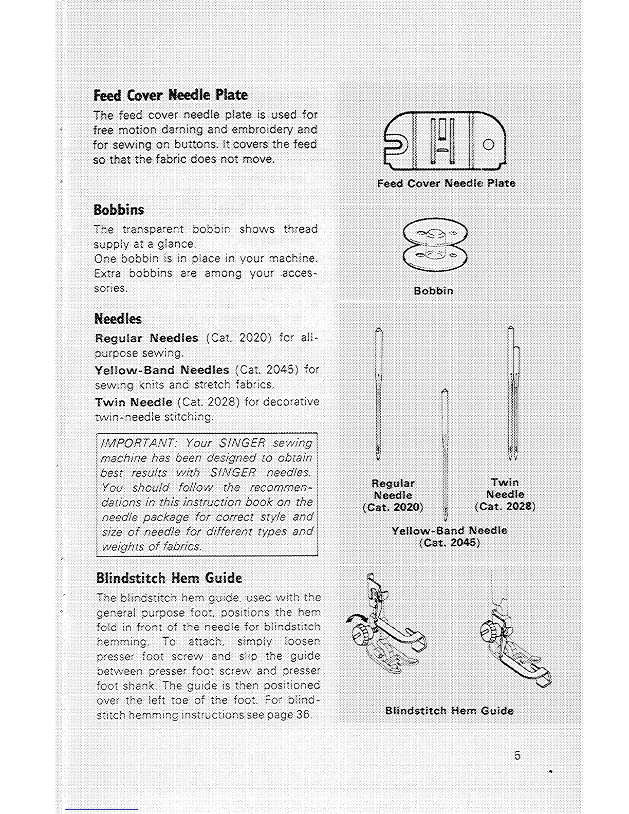 Singer 522 - Feed Cover Needle Plate; Bobbins; Blindstitch Hem Guide