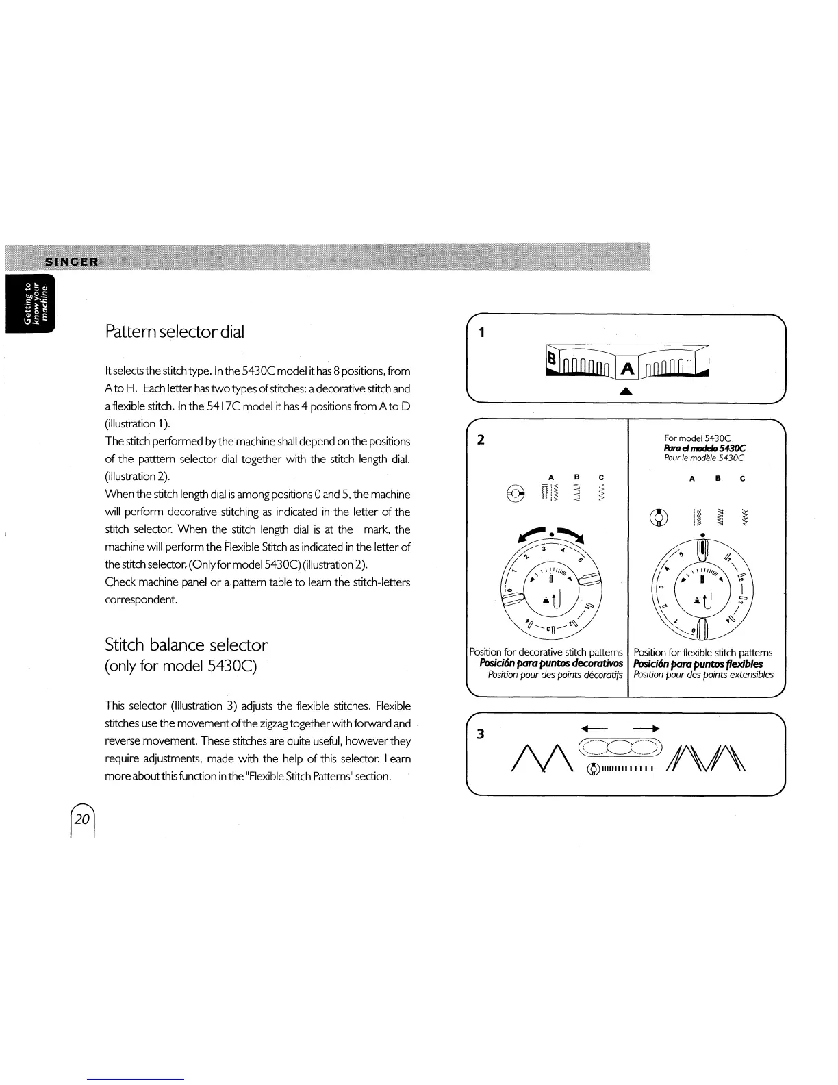 Singer 5417C - Pattern selector dial; Stitch balance selector (only for model 5430 C)