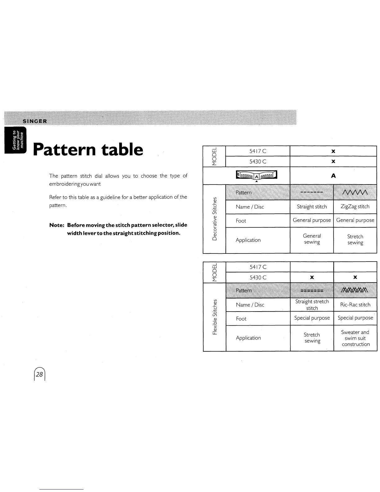 Singer 5417C - Pattern table