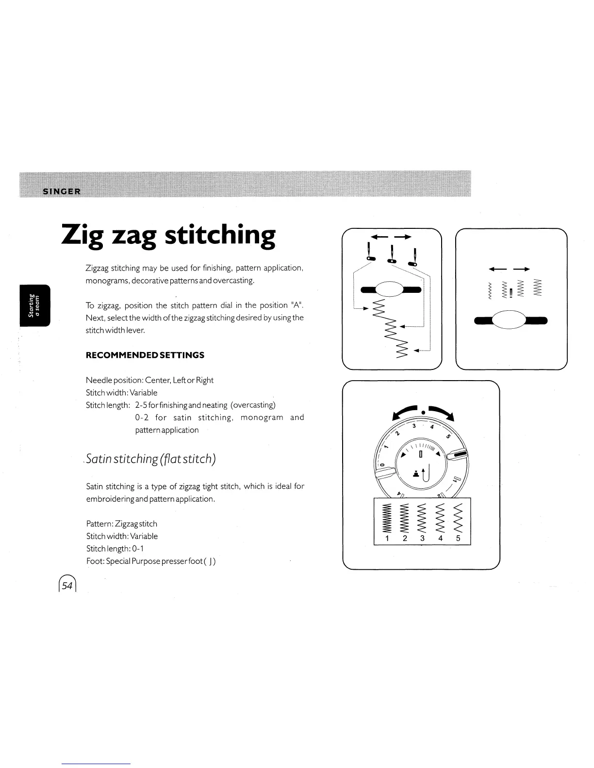 Singer 5417C - Zig zag stitching; Satin stitching (flat stitch)