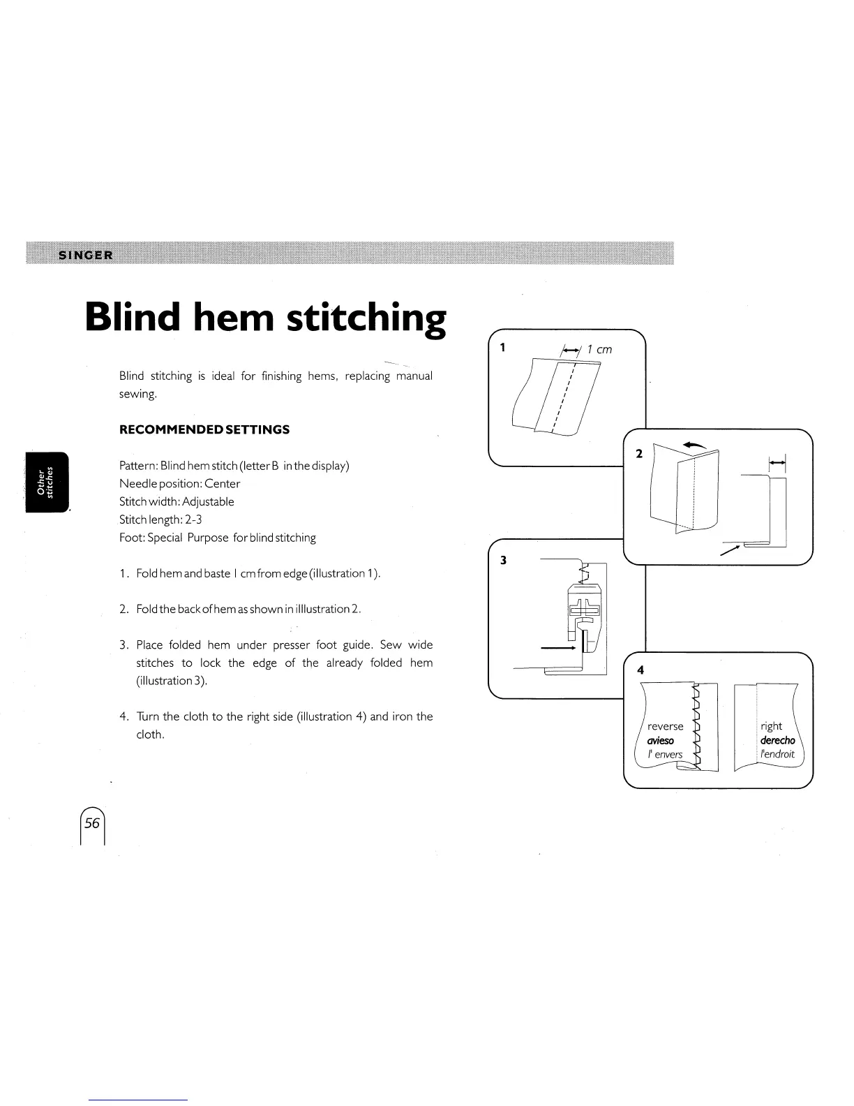 Singer 5430C - Blind hem stitching; Recommended Settings