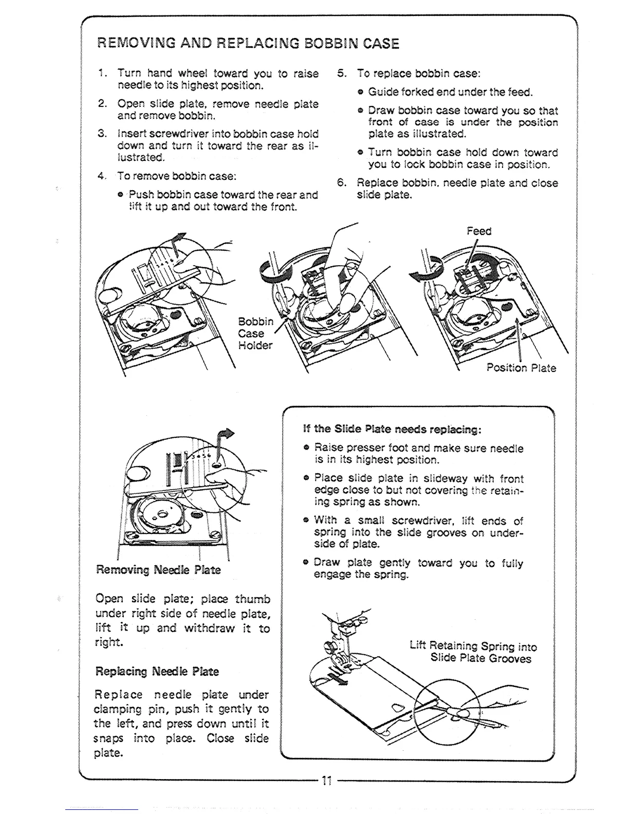 Singer 547 - Removing and Replacing Bobbin Case; Removing and Replacing Needle Plate