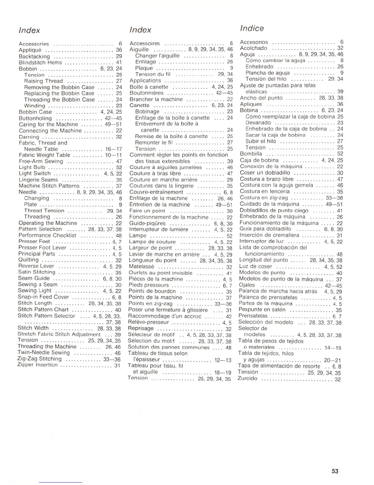 Singer 5505; 5525 - Index