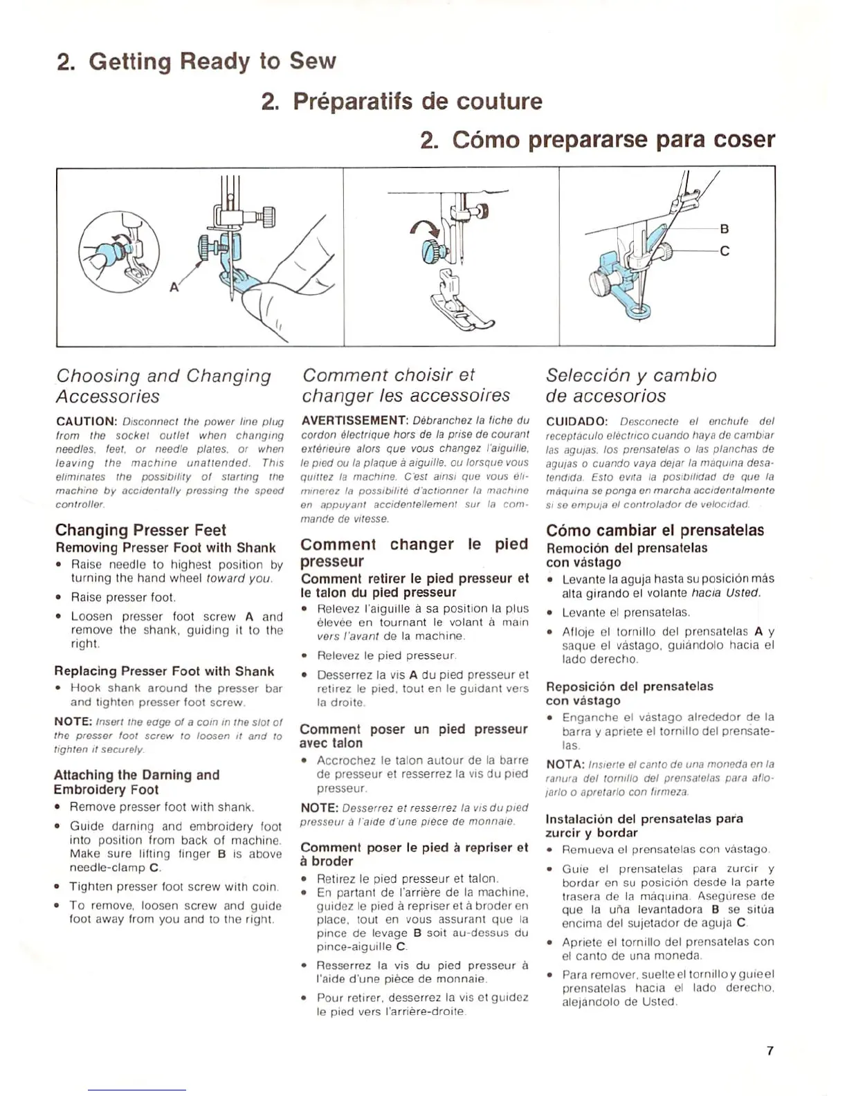 Singer 5505; 5525 - Getting Ready to Sew; Changing Presser Feet