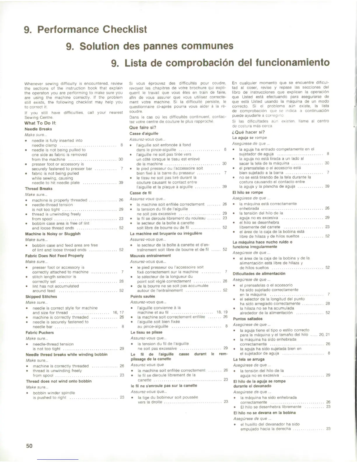 Singer 5508; 5528 - Performance Checklist; Common Sewing Problems and Solutions