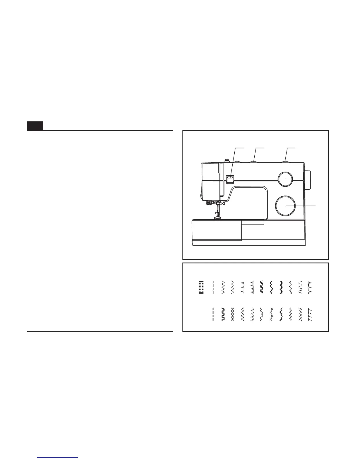 The diagram on this page display the stitch patterns available