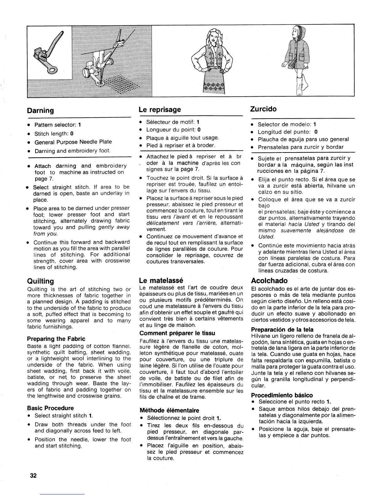 Singer 5528 - Darning; Quilting; Preparing the Fabric; Basic Procedure